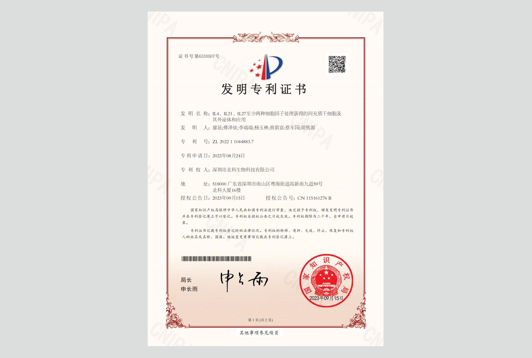 截至2024年1月,北科生物在細胞領域已申請207項專利,其中162項獲得授權