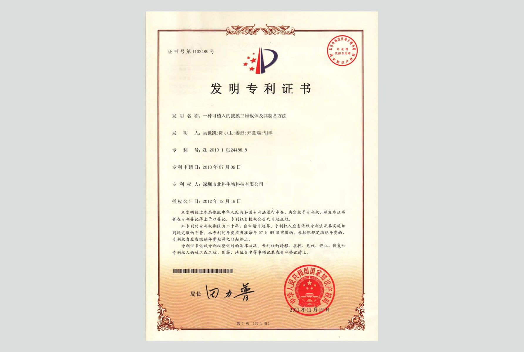 《深圳生物產業(yè)振興發(fā)展規(guī)劃(2009-2015年)》中“組織工程與干細胞專項”中專門提出“推進建設北科生物干細胞與再生醫(yī)學產業(yè)化項目”