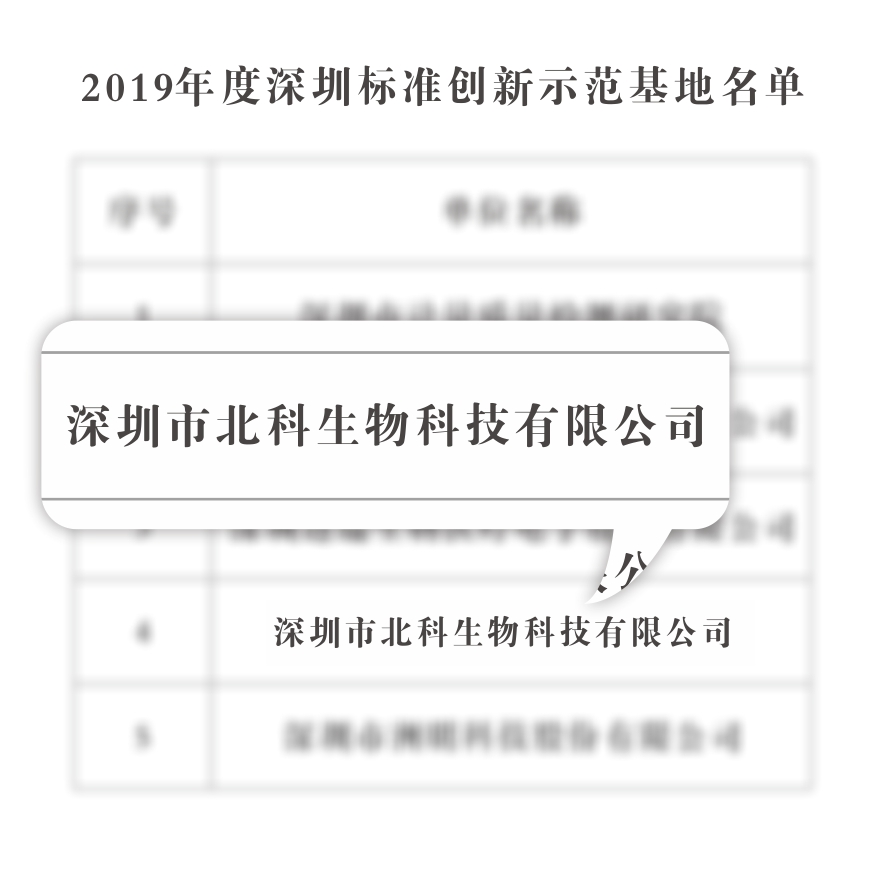 07 —— 2020年,北科生物獲得深圳市市場(chǎng)監(jiān)督管理局認(rèn)定的“2019年度深圳標(biāo)準(zhǔn)化創(chuàng)新示范基地”的稱號(hào)。