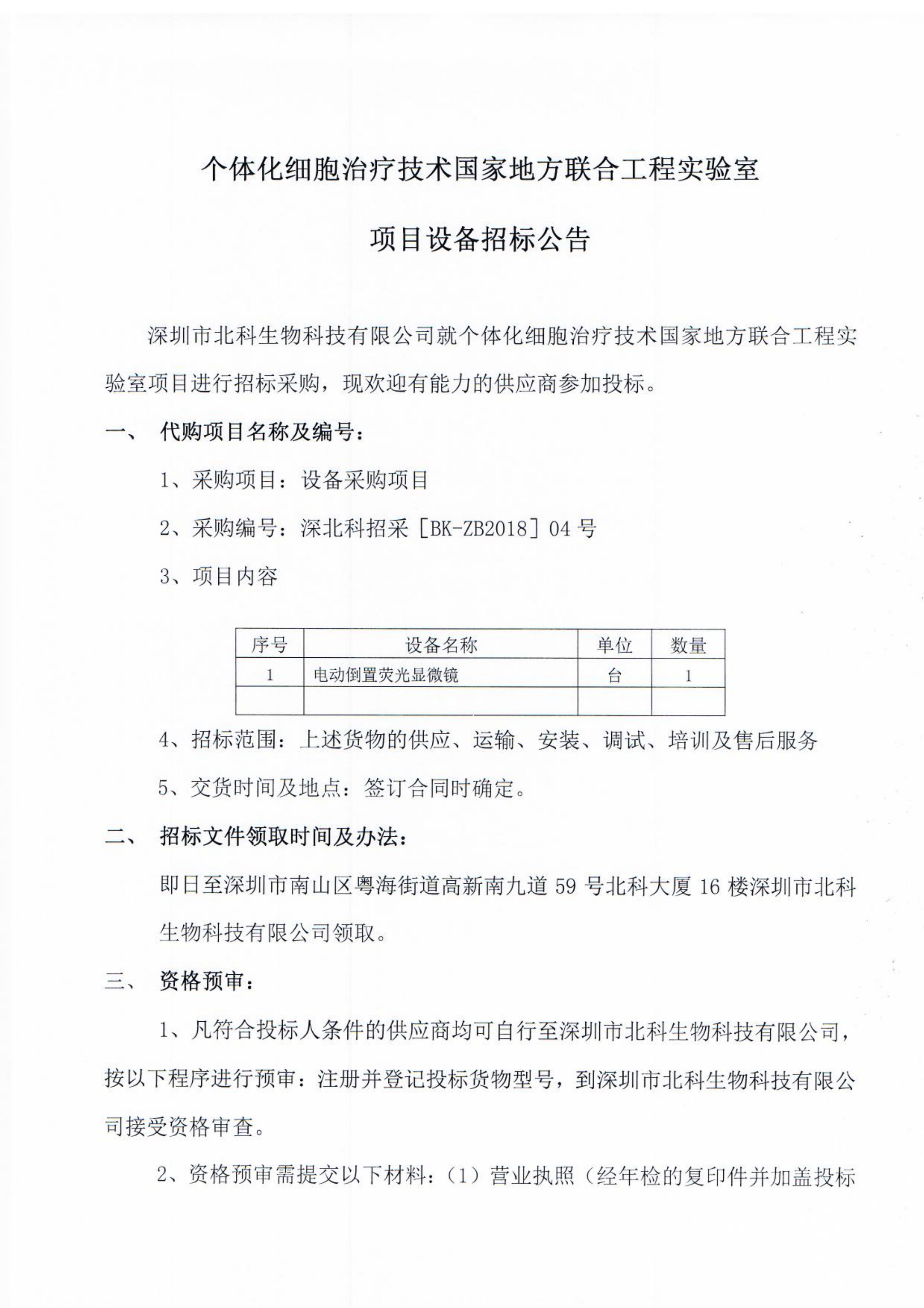 個體化細(xì)胞治療技術(shù)國家地方聯(lián)合工程實(shí)驗(yàn)室項(xiàng)目設(shè)備招標(biāo)公告