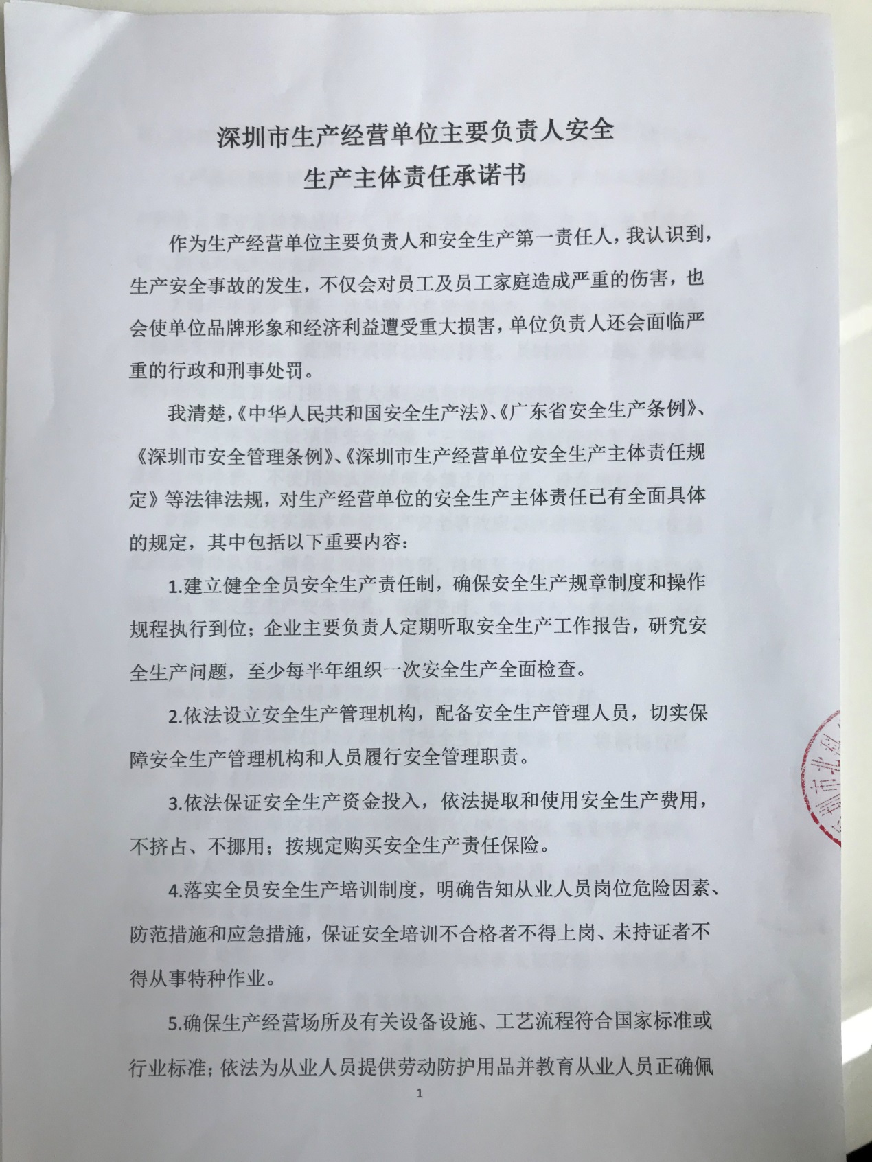 深圳市生產(chǎn)經(jīng)營單位主要負(fù)責(zé)人安全生產(chǎn)主體責(zé)任承諾書