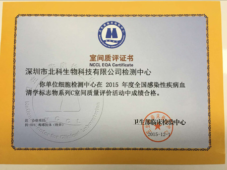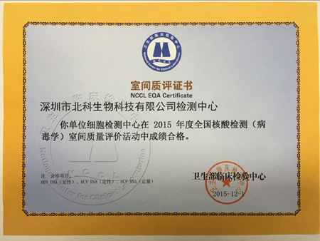 至今,北科生物自2011年以來,已參加4次衛(wèi)生部臨床檢驗(yàn)中心組織的室間質(zhì)評(píng)活動(dòng),均獲得合格的《室間質(zhì)評(píng)證書》;今后,深圳細(xì)胞質(zhì)量檢測(cè)平臺(tái)將持續(xù)參加室間質(zhì)評(píng)項(xiàng)目,為客戶儲(chǔ)存的細(xì)胞及制備臨床級(jí)細(xì)胞提供更安全保障。