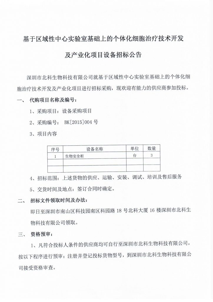 基于區(qū)域性中心實(shí)驗(yàn)室基礎(chǔ)上的個(gè)體化細(xì)胞治療技術(shù)開發(fā)及產(chǎn)業(yè)化項(xiàng)目設(shè)備招標(biāo)公告