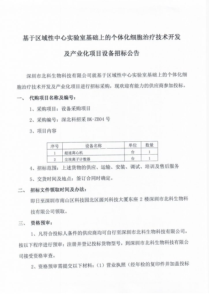 基于區(qū)域性中心實(shí)驗(yàn)室基礎(chǔ)上的個(gè)體化細(xì)胞治療技術(shù)開(kāi)發(fā)及產(chǎn)業(yè)化項(xiàng)目設(shè)備招標(biāo)公告