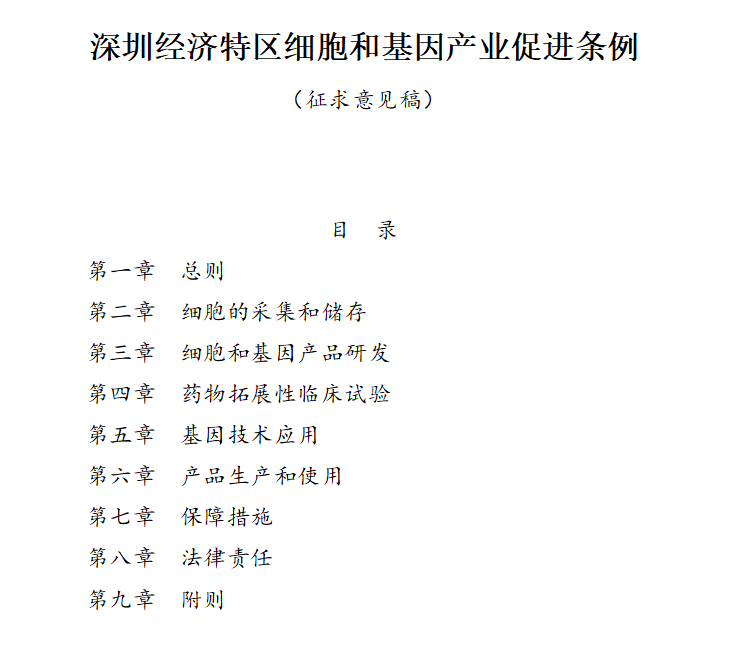2021年11月12日,深圳新興領(lǐng)域重要立法《深圳經(jīng)濟特區(qū)細胞和基因產(chǎn)業(yè)促進條例(征求意見稿)》在深圳市人大常委會網(wǎng)站上公開征求意見。