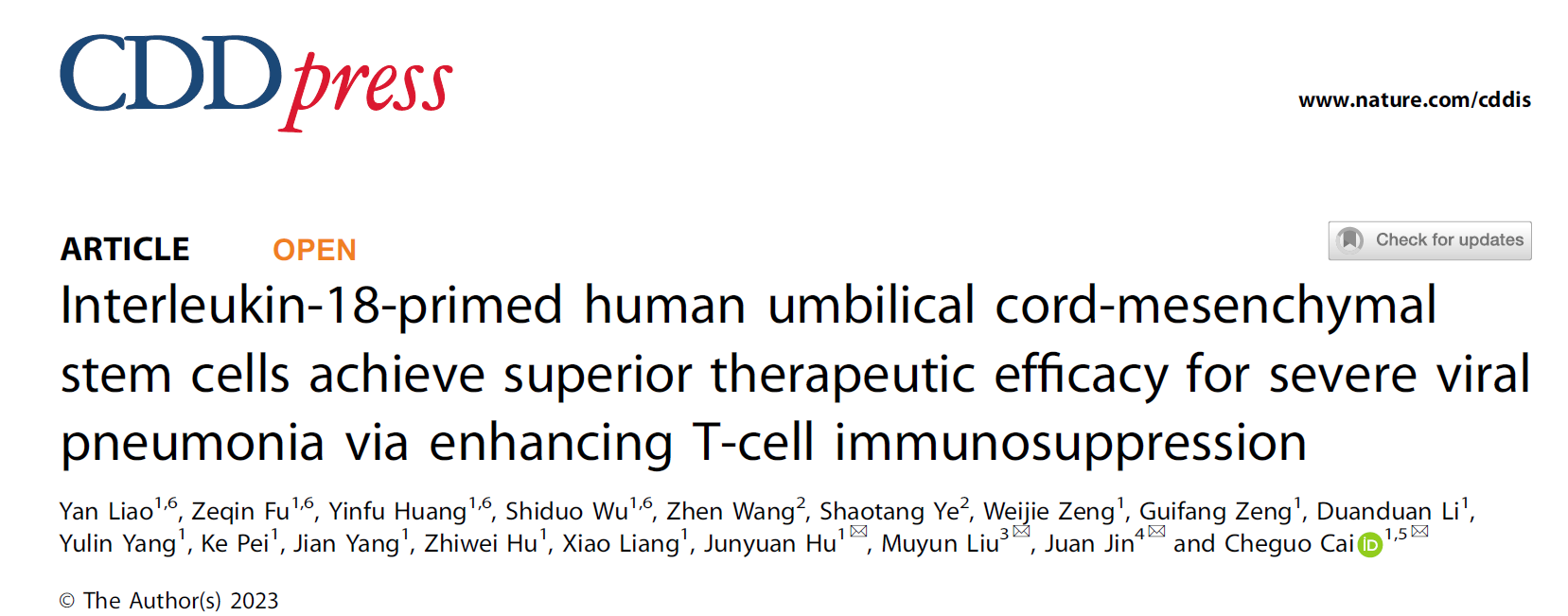 2023年1月28日,深圳市北科生物科技有限公司研發(fā)中心蔡車國教授和廖延博士團隊在國際權(quán)威學術(shù)期刊《Cell Death & Disease》(影響因子=9.68,中科院一區(qū))在線發(fā)表關(guān)于炎癥因子IL-18賦能型臍帶間充質(zhì)干細胞可增強針對重癥病毒性肺炎導致肺損傷治療效果的研究成果。論文題為:“Interleukin-18-primed human umbilical cord-mesenchymal stem cells achieve superior therapeutic efficacy for severe viral pneumonia via enhancing T-cell immunosuppression”。近年來。北科生物科研成果轉(zhuǎn)化穩(wěn)步提升,不僅體現(xiàn)在“量的增長”上,更體現(xiàn)在“質(zhì)的飛躍”上。北科生物在高水平論文,尤其是國際權(quán)威期刊的學術(shù)論文發(fā)表方面不斷取得突破, 正是其科研實力和技術(shù)創(chuàng)新方面的實力體現(xiàn)。